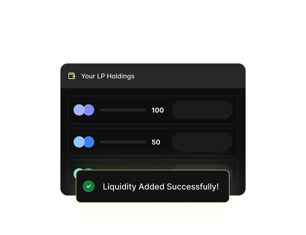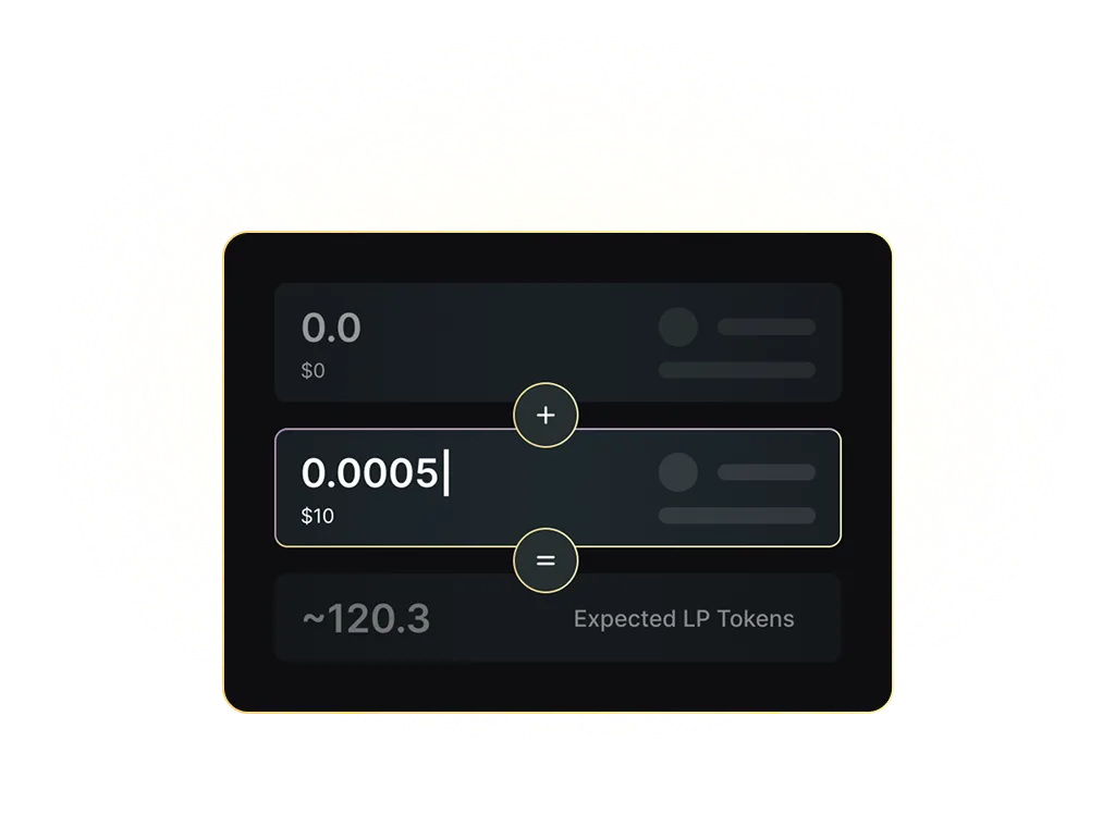 Use the form to decide how much of each asset you'd like to pool and get an estimate* of returned LP tokens.